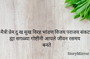 मैत्री,प्रेम,दु:ख,सुख,विरह,भांडण,विजय,पराजय,संकट ह्या सगळ्या गोष्टींनी आपले जीवन रसमय बनते.