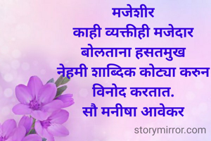 मजेशीर काही व्यक्तीही मजेदार बोलताना हसतमुख नेहमी शाब्दिक कोट्या करुन विनोद करतात. सौ मनीषा आवेकर