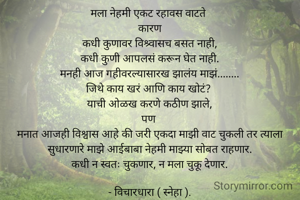 मनात आजही विश्वास आहे की जरी एकदा माझी वाट चुकली तर त्याला सुधारणारे माझे आईबाबा नेहमी माझ्या सोबत राहणार.