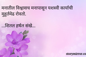 मनातील विश्वासच मनापासून यशस्वी कार्याची मुहूर्तमेढ रोवतो. ...शितल हर्षल संखे...
