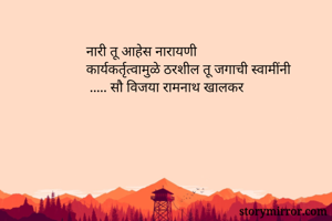 कार्यकर्तृत्वामुळे ठरशील तू जगाची स्वामींनी