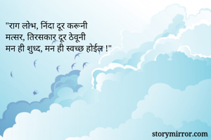 "राग लोभ, निंदा दूर करूनी मत्सर, तिरसकार दूर ठेवूनी मन ही शुध्द, मन ही स्वच्छ होईल !"
