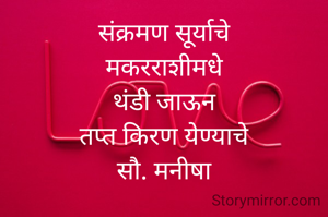 संक्रमण सूर्याचे मकरराशीमधे थंडी जाऊन तप्त किरण येण्याचे सौ. मनीषा