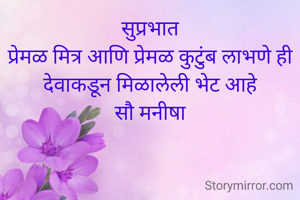 सुप्रभात प्रेमळ मित्र आणि प्रेमळ कुटुंब लाभणे ही देवाकडून मिळालेली भेट आहे सौ मनीषा