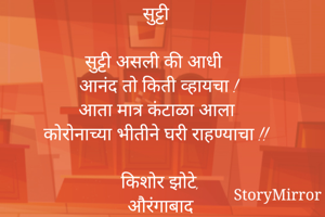 सुट्टी सुट्टी असली की आधी आनंद तो किती व्हायचा ! आता मात्र कंटाळा आला कोरोनाच्या भीतीने घरी राहण्याचा !! किशोर झोटे, औरंगाबाद