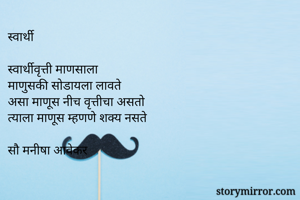 स्वार्थीवृत्ती माणसाला