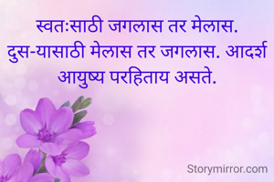 स्वतःसाठी जगलास तर मेलास. दुस-यासाठी मेलास तर जगलास. आदर्श आयुष्य परहिताय असते.