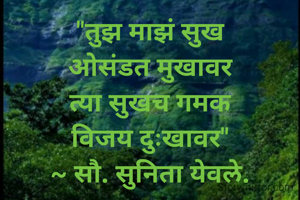 "तुझ माझं सुख ओसंडत मुखावर त्या सुखच गमक विजय दुःखावर" ~ सौ. सुनिता येवले.