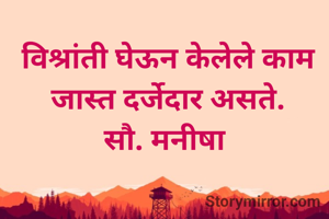 विश्रांती घेऊन केलेले काम जास्त दर्जेदार असते. सौ. मनीषा