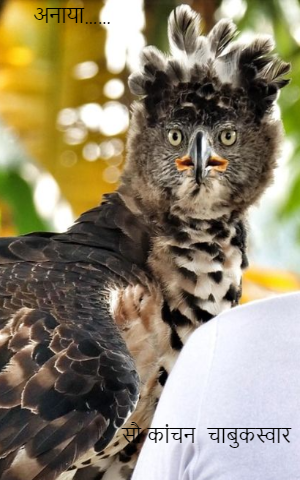 लक्ष्मण चे बोलावणे ऐकून अनाया त्याच्या हातावर येऊन बसली. आणि तिने झाडावर असलेल्या मुकुटधारी गरुडाच्या घरट्याकडे तोंड केले.