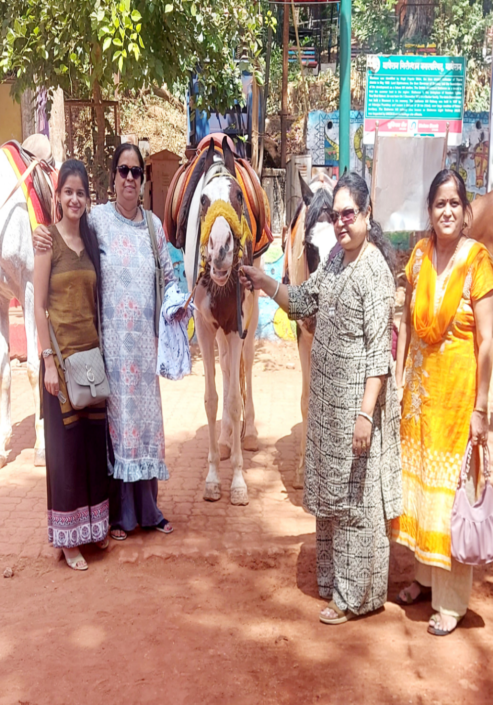 *पुढील प्रवास सुरू व्हायला या टायरने आमचे तब्बल दीड तास वाया घालवले.माथेरानला कवी संमेलनासाठी जायचे होते.सुट्टी होती.भावजय,सुनबाई,सुनेची आई व मी अशा मस्त फुल्ल फोर धमाल करायची असे ठरवले पण सुरूवातच या पहिल्या अनुभवाने झाली.असो..हा ही अनुभव घेवून पाहिला.पुढे माथेरान स्थळी पोहोचलो.तिथे आगगाडी वेळे नव्हती.मग काय जी वसुधा आज वयाच्या पंचावन्न पर्यंत घोड्यावर बसायला घाबरत होती ती घोड्यावर बसली.व तो एक वेगळा नवअनुभव घेतला. घोडा बिचारा आपले ओझे पेलतोय ही सल मनात होती.पण इलाज नव्हता.*