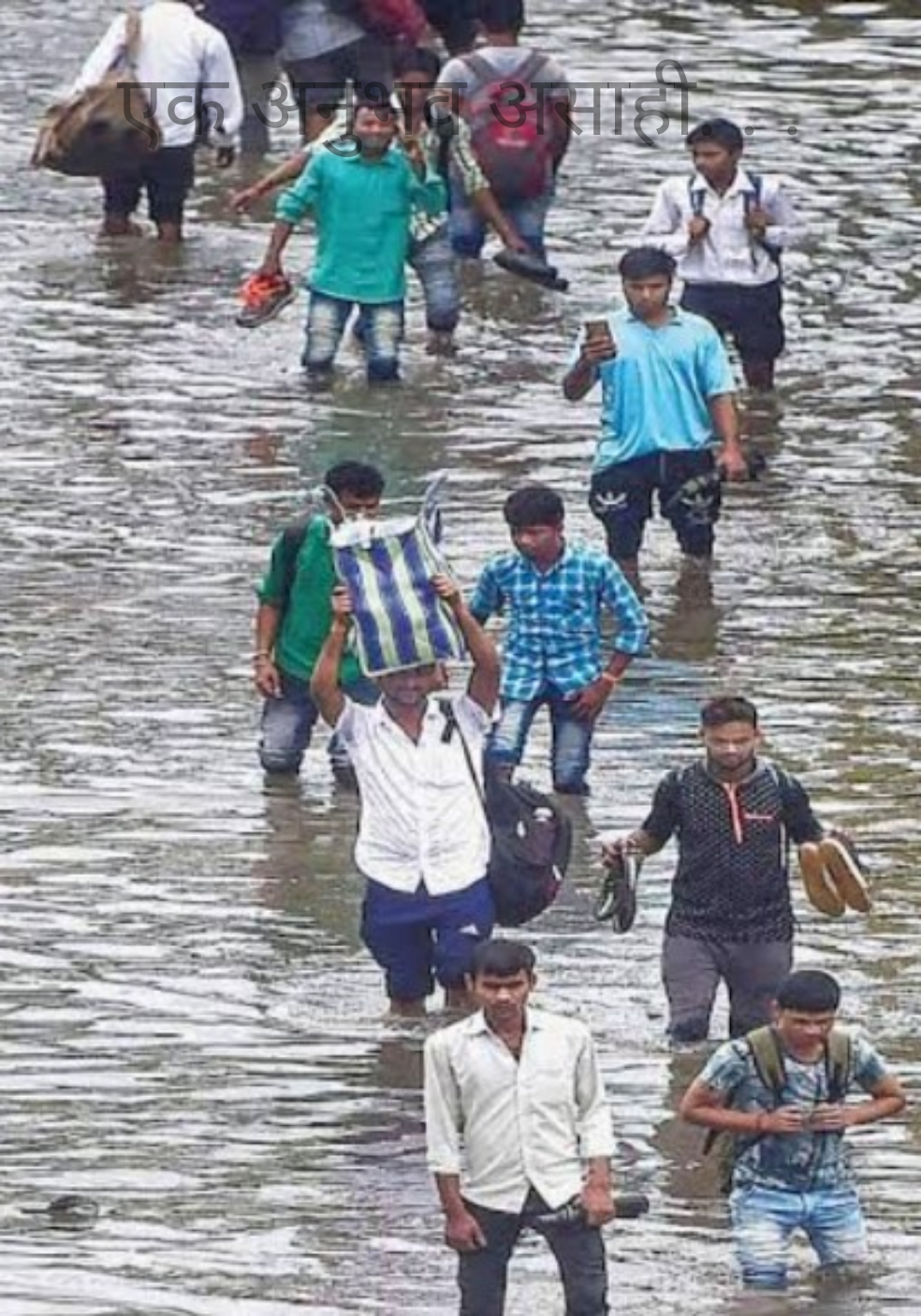 काही मिनिटं वाट पाहून मीही त्या लोकांत सामील झालो. जमेल तशी वाट काढत माणसं चालत निघाली होती. कदाचित माझ्यासारखाच त्यांनाही प्रॉब्लेम असेल. तुंबलेल्या पाण्यातून आम्ही सर्वजण संभाळून जात होतो. बराच मोठा पल्ला गाठायचा होता मला. पाऊस पुन्हा सुरू झाला होता, जोराचा नव्हता पण भुरभुरत होता. त्यामुळे छत्री उघडणं भाग होतं. उघडी छत्री संभाळत चालणं अजून कठीण झालं होतं. वीस-पंचवीस मिनिटं चाललो असेन आणि खिशातला मोबाइल वाजू लागला. बॅग, छत्री संभाळत मोबाइल खिशातून काढणं म्हणजे मोठं जिकिरीचं काम झालं होतं. पण मोबाइलवर बोलणं तेवढंच आवश्यक होतं त्यामुळे कसाबसा मोबाइल काढला. पत्नीच्या मोठ्या बहिणीकडून दहीसरहून फोन होता. आमच्या काळजीपोटी त्यांनी फोन केला होता. बर्याच प्रयत्नांनंतर त्यांच्याकडून मला कॉल लागला होता. मी तसाच चालतचालतच माझी परिस्थिती त्यांना सांगितली. दरम्यान पाण्याखालच्या खड्ड्यात माझा पाय अडखळला आणि मोबाइल पाण्यात पडला. मी पटकन पकडायचा प्रयत्न केला पण तो पाण्याखाली गेला. मीही गुडघाभर पाण्यात जवळजवळ बसलोच तसा तो हाताला लागला. पटकन बाहेर काढून पाहीलं तर सुदैवानं तो बंद पडला नव्हता. मी त्यांच्याबरोबरचं बोलणं आटोपतं घेतलं. मोबाइल तीनचार वेळा चांगला झटकला आणि सरळ बॅगेत टाकला. पार्ल्यात पोहोचेपर्यंत बाहेर काढायचा नाही हे मनोमन ठरवून टाकलं, न जाणो पुन्हा पाण्यात पडायचा. चालत असतांना लोकांच्या बोलण्यातून ऐकलं की मोबाइलसेवा कोलमडलीय, चुकून फोन लागला तर लागतो नाहीतर लागतच नाहीये.