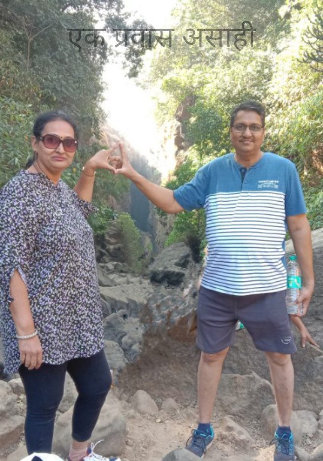 पाण्यातून जायच्या आधी पायातील शूज काढून फ्लोटिंगची चप्पल घातली . त्या चपला सांभाळताना नाके नऊ आले कारण त्या चपला हातात एका साध्या बॅग मध्ये होत्या. अशावेळी सामान ठेवण्यासाठी सॅकचाच वापर करायला पाहिजे .पाय शेवाळ्यावरून घसरत होते डोंगराच्या कडेकडेने हात धरून चालत होतो. वरती विंचूचे वास्तव्य . मनात भिती .पुढे गेलो परत शूज घातले . आता शूज थोडे ओले झाले होते . परत पुढे थोड्या पाण्यातून जावे लागले . आता जरा बऱ्यापैकी रस्ता आहे असे वाटले . मी पटापट जायला बघत होते आणि एका दगडावरून माझा पाय सटकला .कोणीतरी म्हणाले शूज ओले झालेत म्हणून घसरलात . गुडघ्याला जखम झाली .कशी बसे स्वतःला सावरले . माझे मिस्टरही लगेचच मला सावरण्यासाठी पुढे आले . आता जरी लागले तरी न डगमगता पुढे चालू लागले .परत पुढे मोठमोठाले दगड . परत कसरत करत करत पुढे गेले .अगदी शेवटपर्यंत मी गेले नाही .मी उतरू शकत होते .पण त्या ठिकाणी माझ्यासाठी वरती चढून येणे मलाच अशक्य वाटत होते . अनेक ट्रेकर्स वस्तीसाठी आपला बाडबिस्तारा घेऊन जात होते .काही तरुण मुले जी आली होती ती पटापट दगडांवरून उड्या मारत चालत होती . मी कुतूहलाने त्यांना विचारले , "अरे तुम्हाला भीती नाही वाटत ?कसे पटापट जाता या दगडांवरून चालत . " तर ते म्हणाले , " आम्ही डोंगरात असलेल्याच गावात राहतो .अशा दगडातून पटापट चालणे आम्हाला नित्याचेच आहे . " तेथील मोठमोठाले दगड पाहून पावनखिंड लढवताना बाजीप्रभू व मावळ्यांनी असे मोठमोठाले दगड ढकलून शत्रुसैनिकांना कसे गारद केले याची आठवण झाली . तसेच खरोखरच अशा या दऱ्याखोऱ्यातून हे मावळे कसे फिरले असतील ? असे मनात प्रश्न पडू लागले . परत माघारी निघालो . मला तीन ठिकाणी चढणे अवघड होऊन बसले .दोन ठिकाणी माझा निभाव लागला .मिस्टर मला धीर देतच होते . परत पाच मिनिटे कंबरभर पाण्यातून चालले . पायाची बोटे वाकडी झाली . पाणी खूपच गार होते .परत एका दगडावर मी बसले .बोटे हळूहळू सरळ केली आणि पुढे चालू लागले . आता तिसऱ्या ठिकाणी तर माझ्यावर खूपच अवघड प्रसंग आला . मिस्टरांना म्हटले तुम्ही पहिले वरच्या बाजूला जा मग मी येते . पण मला वरती दगडावरून चढणे खूपच अवघड होऊन बसले .आता डोळ्यातून धारा सुरू झाल्या .मिस्टर मला वरती येण्यासाठी सारखे हात देत होते .पण मनात आले मला हात देताना ते खाली आले तर ? मी वरती पाय ठेवला आणि माझा जरा जरी पाय चुकला तर ? तर मी डायरेक्ट खाली पडणार .थोडा वेळ थांबले .काय करावे समजत नव्हते .परत एक शेवटचा प्रयत्न .काय माहित कुठून माझ्या एवढे बळ आले .मी माझा एक पाय वरती टाकला व मिस्टरांनी माझा हात जोरात खेचला . कशीबशी मी वरती आले . थोडीशी मनातून घाबरलेली होते . थोडावेळ एका दगडावर विश्रांती घेऊन परत पुढची वाट चालू लागलो . आमच्यातील मागे राहिलेली मंडळी कस