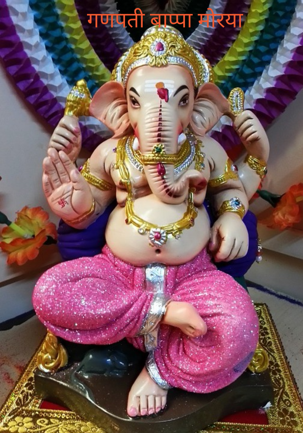 सकाळी उठुन आम्ही छान अशे कपडे घालुन बाप्पाला आणण्यासाठी गेलो.ह्या वर्षी कोरोनाचे संकट असल्यामुळे गणपती बाप्पाचे आगमन साध्या पध्दतीने झाले मात्र सगळ्यांच्या मनात तोच जोश आणि उत्साह होता.गणपती बाप्पा मोरया..... मंगल मूर्ती मोरया..... च्या गजरात बाप्पाचे आमच्या घरी आगमन झाले.बाप्पाला आम्ही सजवलेल्या आसनावर बसवले.बाप्पाचे ते सुंदर रुप पाहुन मन अगदी प्रसन्न झाले.बाप्पा उंदीर मामावर बसला होता,बाप्पाच्या एका हातात मोदक होते,एका हाताने बाप्पा आपल्या भक्तांना आशिर्वाद देत होता,दोन हाता मध्ये शस्त्र होती,बाप्पाने रत्नजडीत मुकुट घातले होते आणि पितांबर घातले होते.गळ्यात दागिने घातले होते.बाप्पाचे ते सुंदर रुप बघतच रहावे असे वाटत होते.