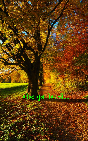 व्वा. खरेच किती छान विचार होते सरांचे. अजूनही इतरांचा विचार करणारे, इतरांच्या सुखातच आपले सुख शोधणारे, नाही, इतरांच्या सुखालाच स्वतःचे सुख मानणारे माझे सर, म्हणजे माझा गुलमोहरच आहे असे वाटले. आजही ते मला आयुष्याचा धडा शिकवून गेले होते. आता हा माझा गुलमोहर मनाने नाही तर शरीराने थकला होता, आता त्याला आनंद देण्याची वेळ आली आहे, आता आपली वेळ आली आहे त्याच्यासाठी गुलमोहर बनण्याची!