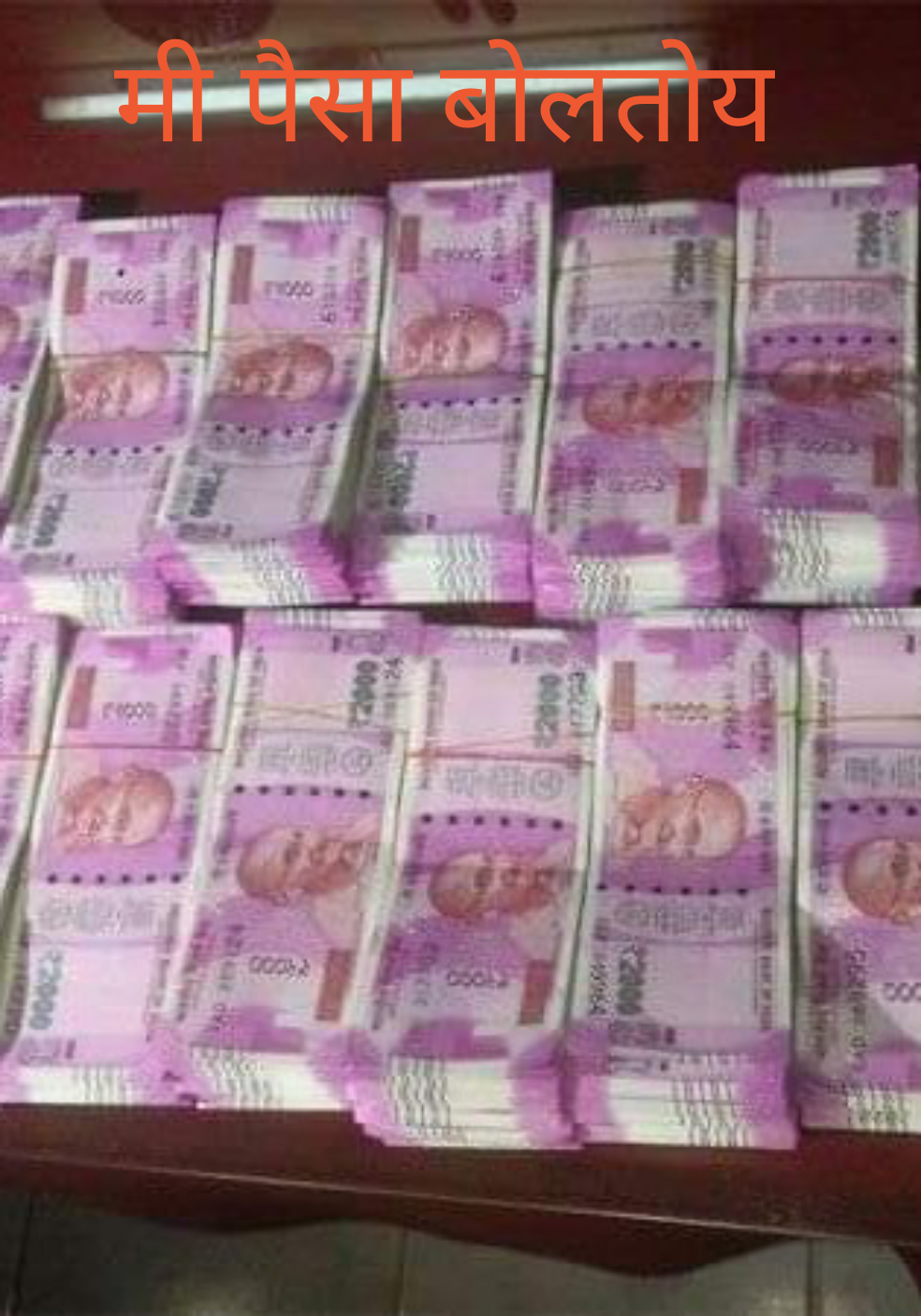 पाहते तर काय खरेच पाच रुपये दहा रुपये" पंधरा रुपये ,वीस रुपये 500, 2000 सर्वच नोटा अवतीभवती फिरू माझ्याशी बोलत आहेत.. अरे जो पैसा मला आवडतो तो आज माझ्या सभोवती फिरून माझ्याशी बोलत आहे.