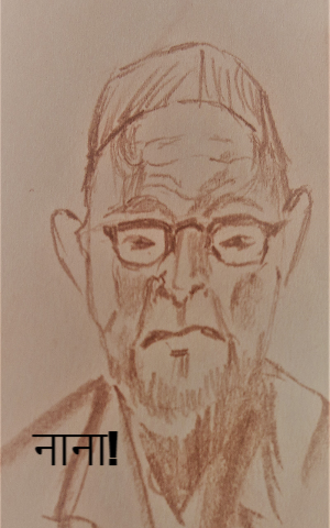 नाना म्हणजे, एक ड्राय फ्रुटचं मिनी स्टोर आहेत! चेहरा एका मोठ्या जर्दाळूसारखा, विशेषतः ते लोंबते गाल आणि रंग. खारकेच्या अठोळीसारखं चकचकीत, आणि टोकदार नाक! बाकी सगळीकडं सुरकुत्या असतील पण नाकावर एकही नाही! बोटाची पेर सुकल्या खारकाच! डोळे बदामी, आकारानं आणि रंगानं सुद्धा. काही बदाम खऊट असावेत, ते त्यांच्या बोलण्यात मुरलेत!