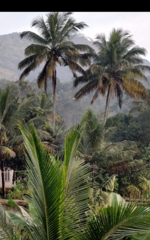 उंच नारळाची झाडे झावळ्यांचे हात हलवून त्याला बोलावत होती . स्वागतासाठी भगवी अबोली , पिवळी कोरांटी. तांबूसकेशरी कर्दळी फुलली होती. कमानीवर गुलाबी मधुमालतीचे झेले सजले होते .तिचा मंद मधुर सुवास मनाला मोहवत होता. आणि त्याची सगळ्यात जास्त आवडती फुलराणी जास्वंदी .पांढऱ्या, पिवळ्या ,लालचुटूक रंगांच्या, जास्वंदीच्या फुलांचे जणू रंग संमेलनच भरले होते. त्यात पंचवीस पाकळ्यांची भरगच्च जास्वंदी खुलून दिसत होती . त्याने मुद्दाम बांधलेल्या छोट्याश्या दगडी तळ्यामध्ये जांभळी कमळे फुलली होती .