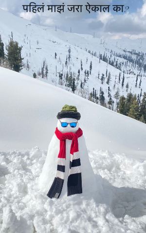 बर्फात डॅाक्टरीणबाईंच्या स्नोमॅन करण्याच्या आंतरीक उर्मीमुळे आम्हाला बाह्या सरसावण्याशिवाय गत्यंतरच नव्हते. पेशवे सिव्हिल इंजिनीयरच्या आवेशात मी जणू कंस्ट्रक्शन लेबररच आहे अश्या समजूतीने मला … “हा अजून खोद त्या तिथे. ढीग पसर “अशी फर्माने देत होता. ॲाडीटरमॅम टेहळणी करत होत्या. तर पिंट्या अंगात जणू शाहरुख खानच शिरला अश्या रितीने वेगवेगळ्या पोझेस् देत नुसताच बागडत होता. डॅाक्टरीणबाई तर एवढी तन्मयतेने स्नोमॅन घडवत होती की मला वाटले की येत्या गणपतीच्या मोसमात क्लिनीकमध्ये गणपतीचा कारखाना काढते की काय?