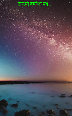 हे सरत्या वर्षा,तुला निरोप देताना तूही हवास आणि नव्या येणार्या तुझ्या भावंडाचंही स्वागत करायचं आहे,अशी ही दोन्ही बाजूंनी मला हुरहुर लागलीय बघ!..त्याच्या आणि तुझ्या मधली ही संध्याकाळ म्हणजे ३१ डिसेंबर! केवळ वर्षभरातच नव्हे तर आजपर्यंतच्या आयुष्यातील भूतकाळ मला आठवतो.सुखं-दु:खं चांगले-वाईट घडलेल्या घटना, मिळालेले यश,झालेले अपेक्षाभंग,काही अपेक्षांची झालेली पुर्तता इत्यादी.हा प्रत्येकाच्या आयुष्याचा एक भाग असतो. कितीही काहीही झालं तरी, भूतकाळात भरलेली ओंजळ थोडी तरी रिकामी करून उद्या येणार्या नवीन वर्षाला जागा करून द्यावीच लागेल तुला! किंबहुना ही सर्वच ओंजळ आपोआप रिकामी होईल.अगदी तुझ्याही नकळत!..तेव्हा या मधल्या उंबरठ्यावर काय सोडायचं आणि काय बरोबर घ्यायचं हे आपण दोघांनीही ठरवारला हवं.ते ठरवण्यासाठी देवानं मला दिलेल्या बुध्दीमुळे मला वाटते की, कित्येकजण दु:खं,सल,वाईट घटनाच जास्त लक्षात ठेवतात आणि मग त्यामध्ये एखाद्या चांगल्या आनंदी घटनेची साखळीच निसटून जाते.माझंही काही अंशी असंच झालं होतं.पण हळूहळू स्वत:च्या मनाला समजावत गेले. मग वाटलं अरे!..मस्तच चाललंय की!..आता कशाला खंत करायची? जगण्यासाठी अजून काय हवंय? एकदा प्रयत्न केला की जमतं. अनावश्यक आलेले विचार निरर्थक वाटतात. हा मुक्त होण्याचा अनुभव काही वेगळाच असतो.तो आपला आपणच घ्यायचा असतो. तो घेता आला की वाटतं व्वा! जमलं की आपल्याला हे नवं स्विकारण्याचं तंत्र! तेव्हापासून आतापर्यंत मी हे करत आले.ते मला जमलेही आहे.म्हणून तर तू असा अचानक माझ्या पाठीशी आलास असं मला वाटलं आज!