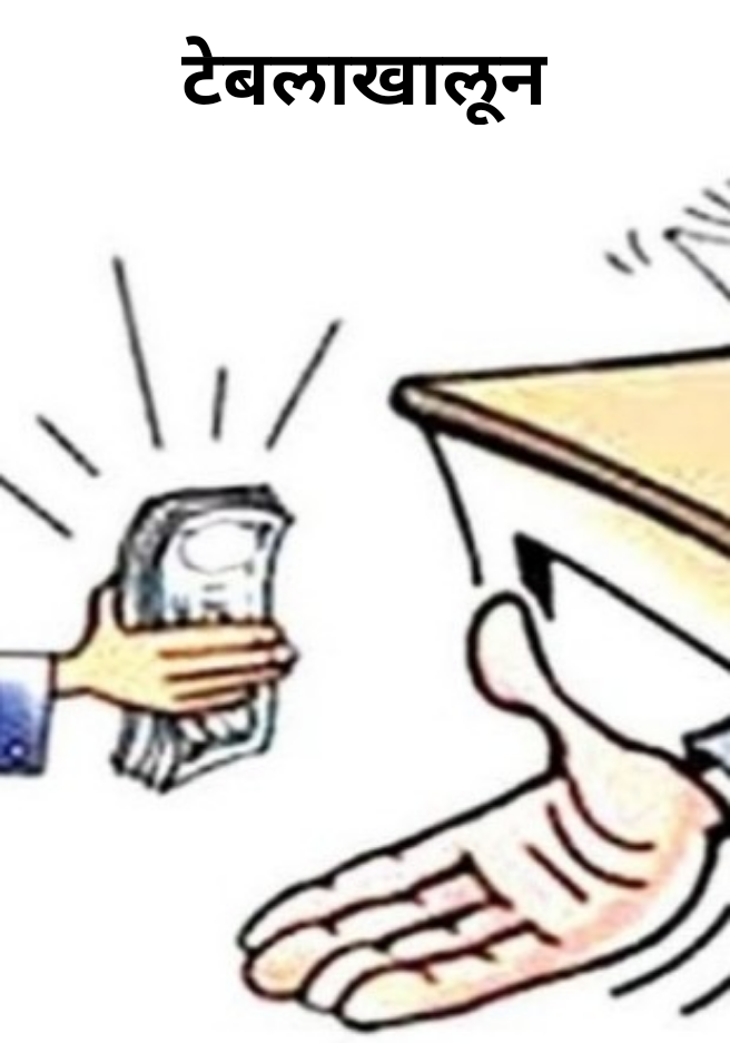 टेबलाखालून हा शब्द जवळ जवळ आपल्या सर्वांच्याच परिचयाचा आहे. आणि जरी ही नसेल परिचयाचा तरी काही हरकत नाही आज मी त्यावरच लिखाण करत आहे. ज्याप्रमाणे आपल्या सगळ्यांना आयुष्य जगण्यासाठी आई-वडिलांच्या किंवा वडीलधाऱ्यांचा आधाराची गरज असते त्याच प्रमाणे आधार कार्ड ही काळाची गरज झाली आहे. कारण आजकाल आधार कार्ड शिवाय कोणताच व्यवहार आपल्याला करता येत नाही. आधार कार्ड, पॅन कार्ड, जातीचा दाखला, जात पडताळणी दाखला, रहिवासी दाखला, नॅशनॅलिटी दाखला, रेशन कार्ड, ड्रायव्हिंग लायसन्स हे आणि यासारखे असंख्य दाखले, गाव नमुना, सात बारा हे आपल्या प्रत्येकाच्या आयुष्याचा एक भाग झाले आहेत. त्यासाठी आपल्याला धाव घ्यावी लागते ती पंचायतीत, तहसीलदार कार्यालय, तलाठी ऑफिस, वकील यांच्याकडे. आणि सगळीकडे सर्वसाधारणपणे प्रामुख्याने आढळून येणारी गोष्ट म्हणजे दिली आणि घेतली जाणारी लाचलुचपत.