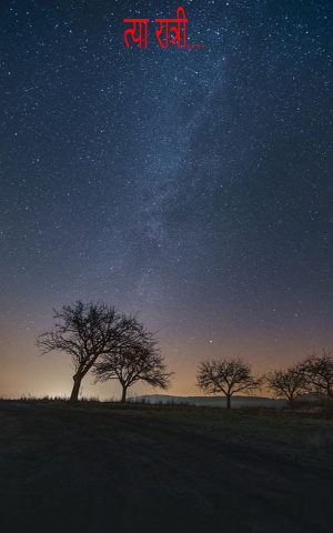 मी महादेवाचे नाव घ्यायला सुरुवात केली. आणि पुन्हा हॉलच्या दिशेने झपाझप पावले टाकत निघालो. तितक्यात पुढून एक ट्रक येताना दिसला. त्याच्या हेड लाईट च्या पडणाऱ्या प्रकाशात माझ्या मागच्या बाजूला कसलीशी हालचाल जाणवली आणि अंगावर सर्रकन काटा येऊन गेला. मी तिरक्या नजरेने मागे पाहण्याचा प्रयत्न केला आणि एक पांढरट आकृती वाऱ्याच्या वेगाने अंधारात जात दिसेनाशी झाली. माझे काळीज भीतीने धडधडू लागले होते. काय करावे काही सुचत नव्हते. पण एक गोष्ट मला कळली की आपण आता कितीही प्रयत्न केले तरी आपल्याला हॉल सापडणार नाही. तेवढ्यात समोरून एक बाईक येताना दिसली तसा जीवात जीव आला.