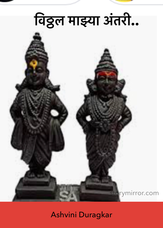 तिन तास होवुन गेले... तिच्या भुकेच्या सीमेचा अंत होण्यास आला होता.... जवळपास दिवस बुडायला आला होता... आपोआप तिचे पाऊल देवळाच्या दिशेकडे वळले... विट्ठल नामाच्या गजराने पुर्ण कौंडण्य नगरी दुमदुमली होती... जशी जशी ती जवळ जात होती तस तसा गजर आणखीन स्पष्ट ऐकायला येत होता.. तिचेही ऒठ आता हलू लागले होते.. विट्ठल नाम गावु लागले होते... बरयाच दिवसांनंतर तिने देवळात पाऊल ठेवले होते.. मूर्ति बघताच तिच उर भरुन आल.. आपल्या मनातील संपूर्ण द्वेष-मत्सर देवापुढे व्यक्त करुन तिने मन हलक केल... ढसाढसा रडु लागली.. डोळे बंद करुन ती आपल्या आईची प्रतिमा अनुभवत होती.. तिला अचानक भास झाला की तिची आई मागुन आली आणि तिच्या पाठीवरन हात फिरवला की काय.. ती एकदम दचकुन उठली... मूर्तित तिला तिच्या आई ची छटा दिसु लागली.. तिच मन खुप प्रसन्न झाल.. जणु आईच भेटली की काय...विट्ठलाला साष्टांग नमस्कार करुन... हातात प्रासादाची खिचडी घेवुन.. ती निघाली.. मन भरुन अगदी तुडुंब भरलेक होत.. ती खुप आनंदी होती.. विठोबा आणि पोटाबा करुन मन व पोट दोन्ही तृप्त झाले होते...