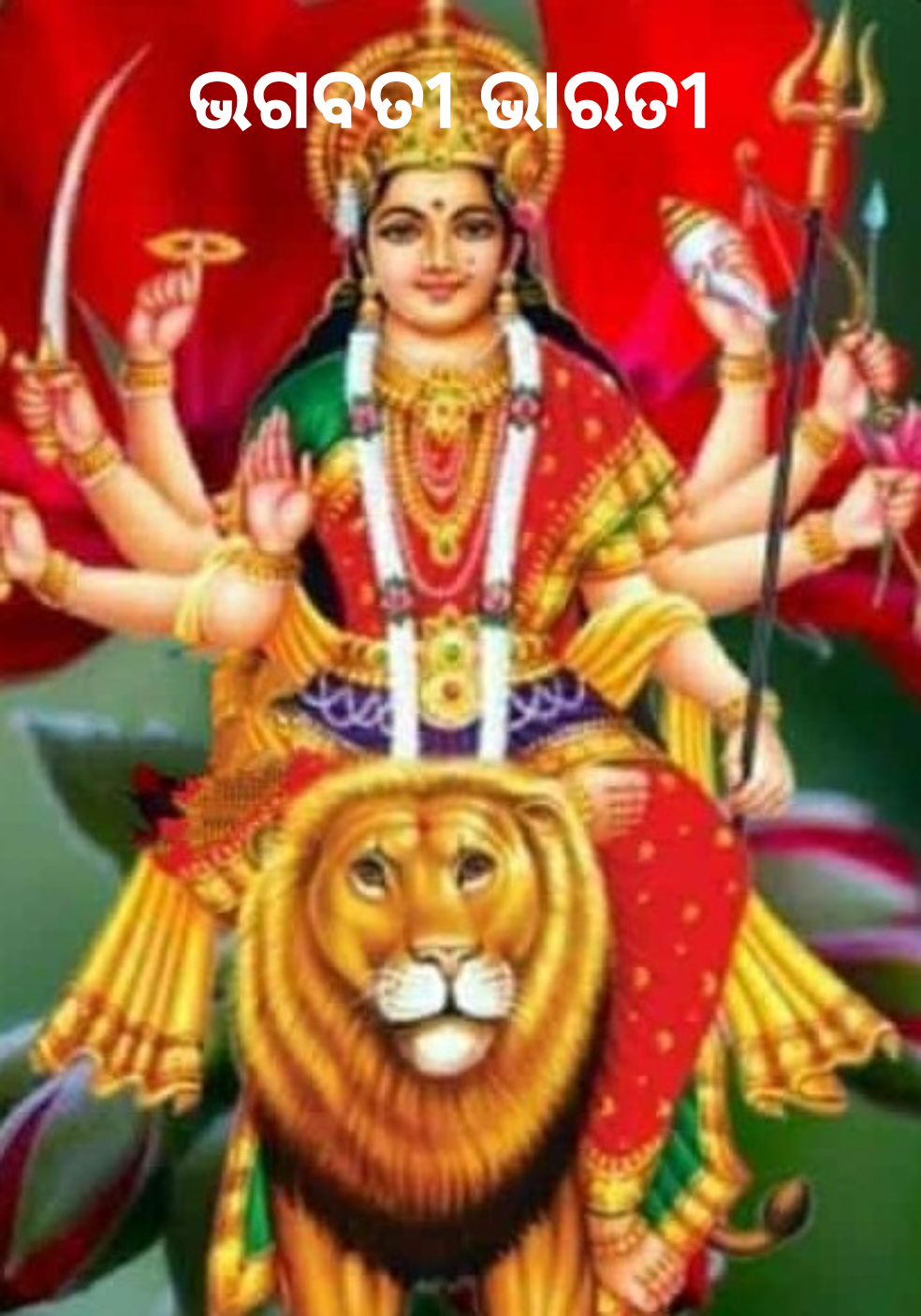 ଦୁଇ ହାତେ ମାଆ ତ୍ରିଶୁଳ ଧରିତ