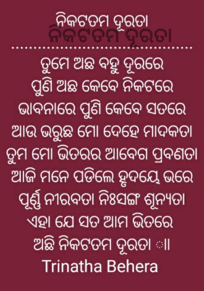 ଆମ ଭିତରେ ଅଛି ନିକଟତମ ଦୂରତା ।