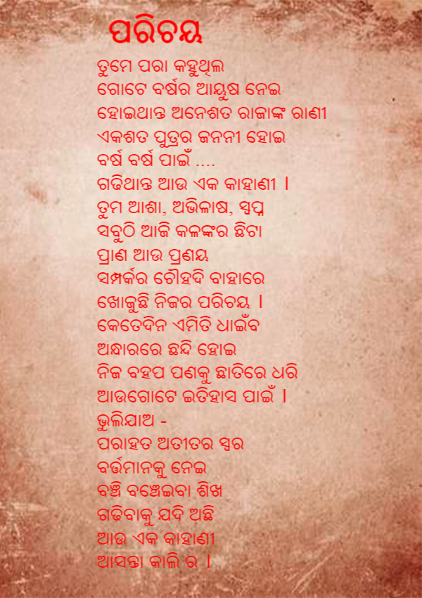 ଖୋଜୁଛି ନିଜର ପରିଚୟ ।