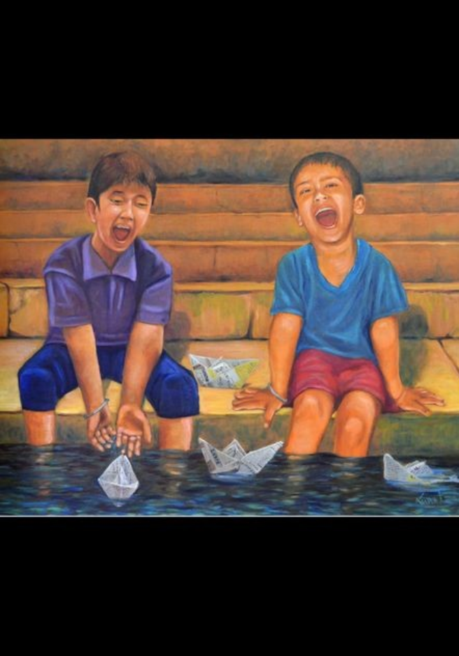 ଚଗଲା ପିଲାଏ କାଗଜ ଡଙ୍ଗା ଭସାଇବା ରେ ଲାଗିଛନ୍ତି