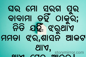 ଘର ମୋ ସରଗ ପୁର ବାବାମା ତହିଁ ଠାକୁର; ନିତି ଯହିଁ ଝରୁଥାଏ ମମତା ଝର,ଶାସନ ଆକଟ ଥାଏ, ଥାଏ ସ୍ନେହ ଆଦର।