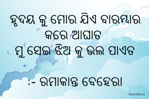 ହୃଦୟ କୁ ମୋର ଯିଏ ବାରମ୍ବାର କରେ ଆଘାତ ମୁ ସେଇ ଝିଅ କୁ ଭଲ ପାଏତ :- ରମାକାନ୍ତ ବେହେରା