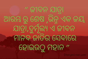" ଜୀବନ ଯାତ୍ରା ଆରମ୍ଭ ରୁ ଶେଷ ,ଭିନ୍ନ ଏକ ଜୟ ଯାତ୍ରା,ଦୁର୍ମୂଲ୍ୟ ଏ ଜୀବନ ମାନବ ଜାତିର ସେବାରେ ହୋଇଉଠୁ ମହାନ "