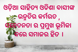 ଓଡ଼ିଆ ସାହିତ୍ୟ ଓଡିଶା ବାସୀଙ୍କ ଉନ୍ନତିର କର୍ମରତ , ସଚେତନତା ର ପ୍ରମୁଖ ଭୂମିକା କରେ ସମାଜର ହିତ ।