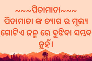 ~~~ପିତାମାତା~~~ ପିତାମାତା ଙ୍କ ତ୍ୟାଗ ର ମୂଲ୍ୟ ଗୋଟିଏ ଜନ୍ମ ରେ ବୁଝିବା ସମ୍ଭବ ନୁହଁ।