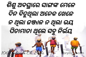ଶିଶୁ ଅବସ୍ଥାରେ ସାଙ୍ଗଙ୍କ ମେଳେ ଦିନ ବିତୁଥିଲା ଅନେକ ଖେଳେ ନ ଥିଲା ଜଞ୍ଜାଳ ନ ଥିଲା ଭୟ ପିତାମାତା ଥିଲେ ସବୁ ନିର୍ଭୟ