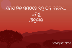 ସମୟ ନିଜ ସମୟରେ ସବୁ ଠିକ୍ କରିଦିଏ.. @ମଧୁ 18ଜୁଲାଇ