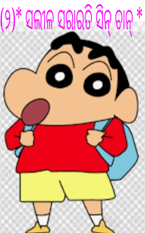 କୁହନ୍ତି ସିନ୍ ଚାନ୍ କାଳ୍ପନିକ ଚରିତ୍ର।ତାସ୍ବତ୍ତେ ସବୁରି ସେ ମିତ୍ର । ବୟସ ମାତ୍ର ପାଞ୍ଚ ବର୍ଷ । ତାକୁ ନେଇ କାହାଣୀ କିନ୍ତୁ ସହସ୍ର । ଦେଖିବାକୁ ସେ କୁଆଡେ ଗୁଲଗାଲିଆ ,କଳାକଳା ବାଳ, ଆଖିରେ ମୋଟା ଚୂଳ । ଉଚ୍ଚତା ସିନା ଅଳ୍ପ, କଥା କିନ୍ତୁ କହେ ନାହିଁ ସ୍ଵଳ୍ପ ।ଭାରି ମେଳାପି, କେବେ କେବେ ମମ୍ ଭୟରେ ଘରକୁ ଆସେ ଛପି ଛପି। ଦିନେ ଝଡି ବର୍ଷାରେ , ଡାଡ୍ ଥିଲେ ଵାହାର ସହରରେ । ମମ୍ ଆଉ ସାନ ଭଉଣୀ ସାଥିରେ, ଯାଇଥିଲା ସେ ମାର୍କେଟ ଖୁସିରେ । ହଠାତ୍ ସେଠି ଘଟିଗଲା ଦୂର୍ଘଟଣା , ସେଦିନ ତାର ହୋଇଗଲା ବୁଦ୍ଧି ବଣା ।ସାନ ଭଉଣୀକୁ ବଞ୍ଚାଇବାକୁ ଚେଷ୍ଟା କରି ,ଦେଲା ସେଠାରେ ନିଜ ଜୀବନକୁ ହାରି ।