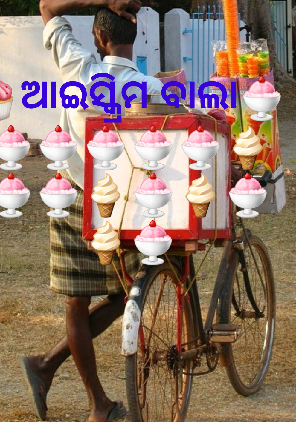 ଆଇସ୍କ୍ରିମ ଡାକି ମଝିରେ ମଝିରେ ଘଣ୍ଟି ବଜାଉଥାଏ ଲୋକଟି.ବୟ ସ ୫୦ /୫୫ବର୍ଷ ହେବ.ଦାରିଦ୍ର୍ୟର କଷାଘାତ,ଭୋକର ଭୂଗୋଳ ବାଧ୍ଯ କରିଛି ଏ ପ୍ରଚଣ୍ଡ ଖରାରେ ଏମିତି ବୁଲିବାକୁ.ଆଜିର ଏ ଅତ୍ଯାଧୁନିକ ଯୁଗରେ ବଜାରରେ ମାଳ ମାଳ ଦୋକାନରୁ ନାମୀଦାମୀ କମ୍ପାନୀର ଆଇସ୍କ୍ରିମ ନକିଛି କିଏ ବା କାହିଁ କି ଏ ବୁଲା ବିକାଳି ଠାରୁ ଶସ୍ତା ଆଇସ୍କ୍ରିମ କିଣିବ ତା ପୁଣି ଏ ଉଦୁଉଦିଆ ଦିପହର ଖରାରେ.କିନ୍ତୁ ତା ପାରିବାରିକ ସ୍ଥିତି ତାକୁ ହୁଏ ତ ବାଧ୍ଯ କରିଛି ଏ ପ୍ରଚଣ୍ଡ ଖରାରେ ଏମିତି ବୁଲି ବୁଲି ଆଇସ୍କ୍ରିମ ବିକିବାକୁ.କିନ୍ତ କିଣୁଛି କିଏ?