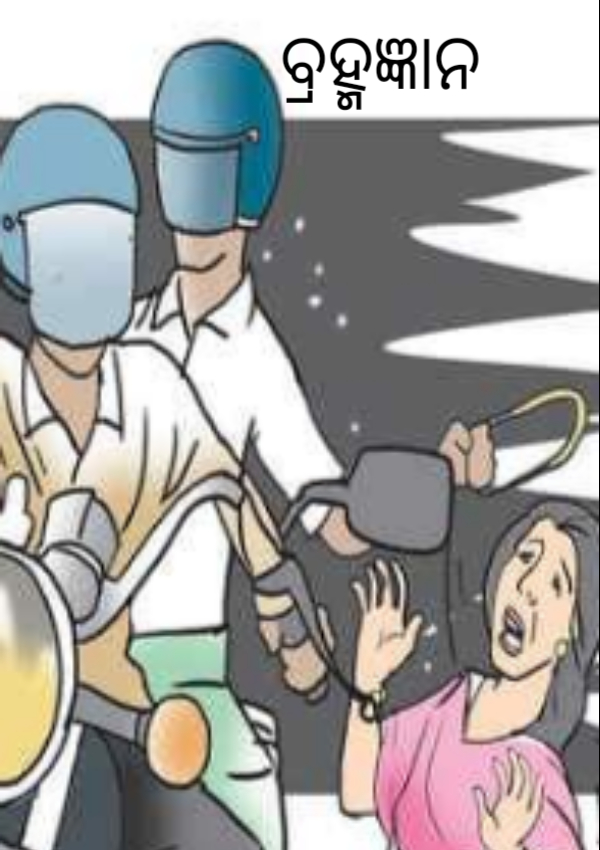"ଧର ଧର" ବୋଲି ଚିତ୍କାର କରି ଝିଅଟିଏ ଏକ ମୋଟର ସାଇକେଲ ପଛରେ ଦୌଡୁଥିଲା। ଆଗରେ ପୋଲିସ ମାନେ ହେଲମେଟ୍ ଚେକିଙ୍ଗ ରେ ବ୍ଯସ୍ତ ଥିଲେ। ମୋଟର ସାଇକେଲରେ ବସିଥିବା ହେଲମେଟ୍ ପିନ୍ଧା ଦୁଇ ଯୁବକ ଛାତି ଫୁଲାଇ ପୋଲିସ୍ ମାନଙ୍କ ଆଗରେ ଅତିକ୍ରମ କଲେ। ଝିଅଟି କାନ୍ଦିକାନ୍ଦି ପୋଲିସ୍ ମାନଙ୍କୁ କହିଲା ଯେ ସେ ଯୁବକ ମାନେ ତା ବେକରୁ ସୁନା ଚେନ୍ ଛିଡାଇ ନେଲେ। ଜଣେ ଦରବୁଢା ପୋଲିସ୍ ପାନଖିଆ ମଳିଛିଆ ଦାନ୍ତ ନିକୁଟାଇ କହିଲା- - ଆଲୋ ଝିଅ ସେ ଦୁଇଜଣ ପରା ହେଲମେଟ୍ ପିନ୍ଧିଛନ୍ତି, ତାଙ୍କୁ କଣ ଧରିହେବ? ଆମେ ଏଠି ହେଲମେଟ୍ ଚେକିଙ୍ଗ ରେ ଅଛୁ ,ଚୋରି ଚମାରି କଥା କଣ ବୁଝିପାରିବୁ । ସେ କଥା ସିନା ଥାନାରେ ବୁଝାବୁଝି ହେବ, ତୁ ଆଗ ଥାନାକୁ ଯାଇ ରିପୋର୍ଟ କର । କ'ଣ ହେଉଛି ଦେଖିବା । ସବୁ କଥା ସିନା ନିୟମ ରେ ହେଲେ ସୁନ୍ଦର ଲାଗିବ, ଏମିତି ହାଟ ମଝିରେ ବ୍ରହ୍ମଜ୍ଞାନ ଦେବା ଟା ପରା ଆଇନ ରେ ନାହିଁ ।