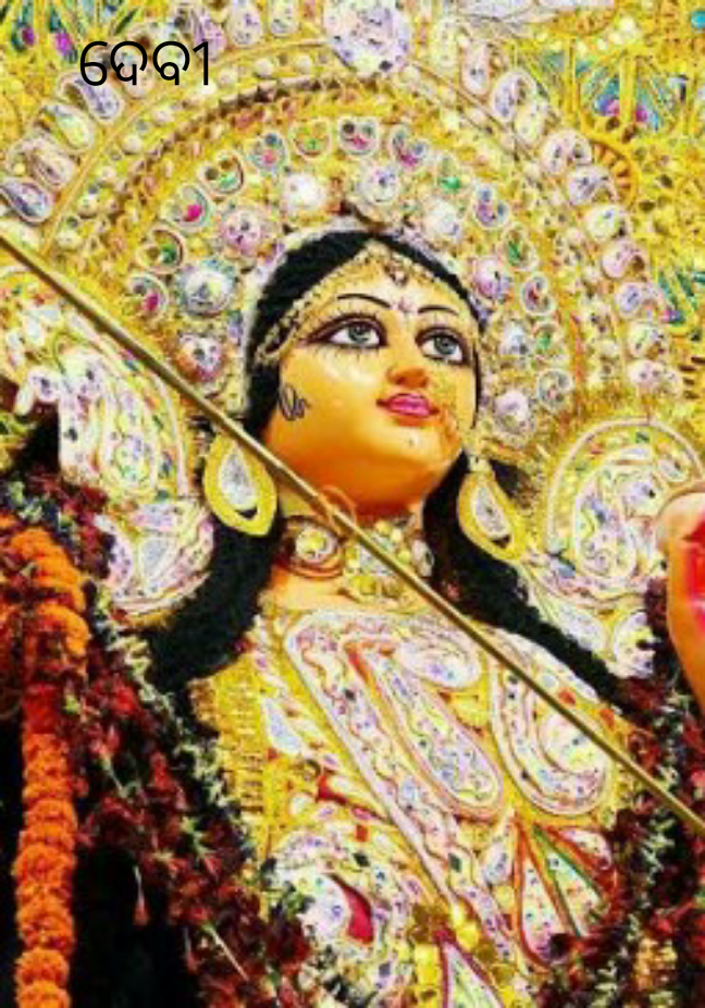 ମୁହଁ ଟେକି ଚାହିଁ ଦେଖେ ସଂଧ୍ୟା ଆଲୁଅରେ ଝଟକୁଥିଲା ଦେବୀ ର ହଳଦୀ ଗଣ୍ଠି ହାତ ଟେ ପାଣି ତଳୁ ।