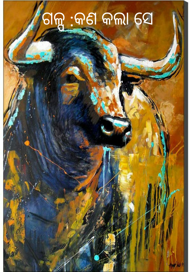 ପିଠିରେ ଧଳାଚାନ୍ଦ କୁଜଟି ,ତିଳକଚିତା କାଟିଲା ପରି,କଳାମଚମଚ ଦେହ କୁ ଭାରି ମାନେ ।ଶାନ୍ତ ସୁଧାର ବୋଲକରା ।ସେମିତି ଠିଆ ହେଇଥିବ ଭୋର ପହରୁ ଆସିକି ଦାଣ୍ଡ ରେ ।