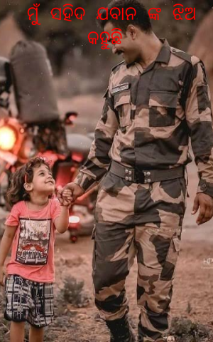 ବାପା କୁହନ୍ତି ଆତ୍ମସନ୍ତୋଷ, ସ୍ୱାଭିମାନରେ ମା | ବାହାର ଲୋକ ଆମ ଜାଗା ନେଇଯିବେ ସେତେବେଳେ କ'ଣ ଆମେ ମୁଣ୍ଡ ଉଠେଇ ଏଇ ଦୁନିଆ ସହ ବଞ୍ଚି ପରିବା | ସବୁବେଳେ ସ୍ୱାଭିମାନ ର ସହ ବଂଚିବା | ତେଣିକି ଯେତେ ବଡ଼ ମୂଲ୍ୟ ଦେବାକୁ ପଡ଼ୁ | ମୁଁ ଅଳ୍ପ କିଛି କିଛି ବୁଝି କହେ ବାପା ମୁଁ ବି ତମ ଭଳି ଦେଶ ସେବା କରିବି | ବାପା କୁହନ୍ତି ସବାସ ବେଟା | ମୁଁ ତତେ ନେଇ ଗର୍ବ କରିବି | ମୁଁ ପଚାରିଲି ବାପା ଏଇ କାମ କରୁଥିବା ଲୋକଙ୍କୁ ନେଇ ଗର୍ବ କରାଯାଏ ? ବାପା କୁହନ୍ତି ହଁ ରେ ମା ଗର୍ବ କରନ୍ତି | ସାଲ୍ୟୁଟ କରନ୍ତି | ଆଜି ତ ଭିତରେ ସେଇ ଭଳି ଆଗ୍ରହ ଦେଖି ମୁଁ ବି ଏଇଠି ତତେ ସାଲ୍ୟୁଟ କରୁଛି | ମୁଁ ବହୁତ ଖୁସି ହେଇଯାଉଥିଲି | ବାପା କୁହନ୍ତି ତୁ ଦେଶ ସେବା କରିଲେ ମୁଁ ବୀରତ୍ୱ ଭାବେ କହିବି ଏଇ ଦେଖ ମୋ ଝିଅ ମୋ ମାଟି ମା ର ସେବା କରୁଛି |