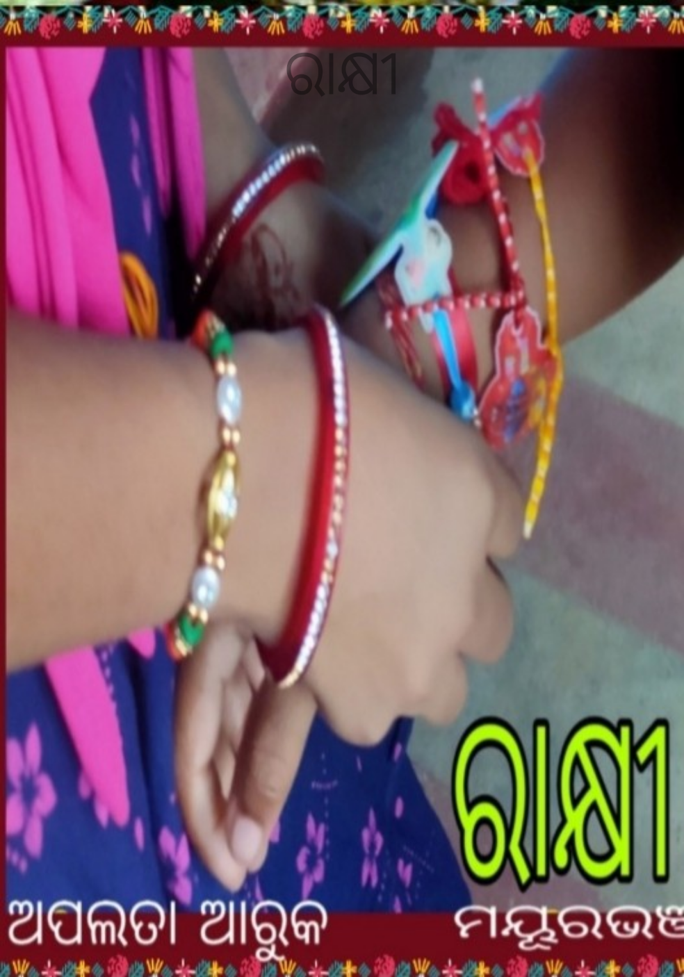 କାଲି ତମେ ଥିଲ ମୋ ଆଦରର ସୀମାନ୍ତ ଭାଇ ।ତମ ହାତରେ ରାକ୍ଷୀ ବାନ୍ଧିବି ବୋଲି ମୁଁ କେଡେ ସରାଗରେ ସକାଳୁ ସକାଳୁ ଧାଇଁ ଆସୁଥିଲି ତମ ଘରକୁ ।ତମେ ବି ଚାହିଁ ରହୁଥିଲ ମୋ ଆସିବା ବାଟକୁ ।ମୁଁ ରାକ୍ଷୀ ବାନ୍ଧୁଥିଲି ତମ ହାତରେ ଆଉ ହସି ହସି ତମେ ଆଶୀର୍ବାଦ ଦେଉଥିଲ ମୋତେ । ଥରେ ମନେ ପକେଇଲ ଭାଇ, କେଡେ ମଧୁମୟ ଥିଲା ସେଇ ପୁରୁଣା ଦିନ ! ମାତ୍ର ଆଜି ଧର୍ମର କନ୍ଦଳ ଭାଇକୁ ଛଡେଇ ନେଇଛି ଭଉଣୀଠାରୁ।ଲୁହରେ ଭିଜୁଛି ରାକ୍ଷୀ।ସମ୍ପର୍କର ଅମୃତ କଳସ ଆଜି ବିଷ ଜର୍ଜରିତ ।ନିର୍ମଳ ଅନୁରାଗରେ ହସୁଥିବା ଏ ଗାଆଁ ଆଜି ଦୁଇ ଭାଗ ।ସୀମାନ୍ତ ଭାଇ,ଆମେ କ'ଣ ପୁଣି ଥରେ ସଂଯୁକ୍ତ କରିପାରିବାନି ଏ ବିଭକ୍ତ ଗାଆଁକୁ ? ଆଜିର ଏ ପବିତ୍ର ରକ୍ଷା ବନ୍ଧନରେ ତମେ ମୋତେ କଥାଦିଅ, ପୁଣିଥରେ ଆମେ ଏ ଗାଆଁକୁ ହସେଇବା ଭାଇଚାରାରେ ।ସମସ୍ତଙ୍କୁ ବାନ୍ଧି ଦେବା ପ୍ରୀତିର ରଜ୍ଜୁରେ ।"