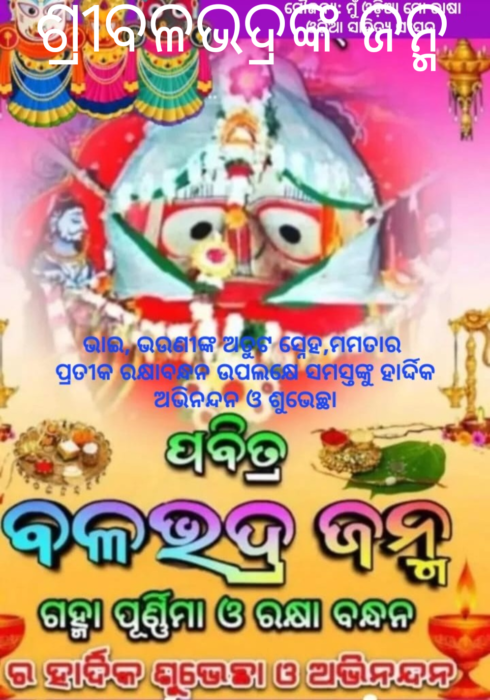 ଶ୍ରାବଣ ପୂର୍ଣ୍ଣିମା ଦିନ ହଳାୟୁଧ, ଭଗବାନ ଶ୍ରୀବଳଦେବଙ୍କ ଜନ୍ମ ଦିନ ବା ଜନ୍ମୋତ୍ସଵ ପାଳନ କରାଯାଇଥାଏ।