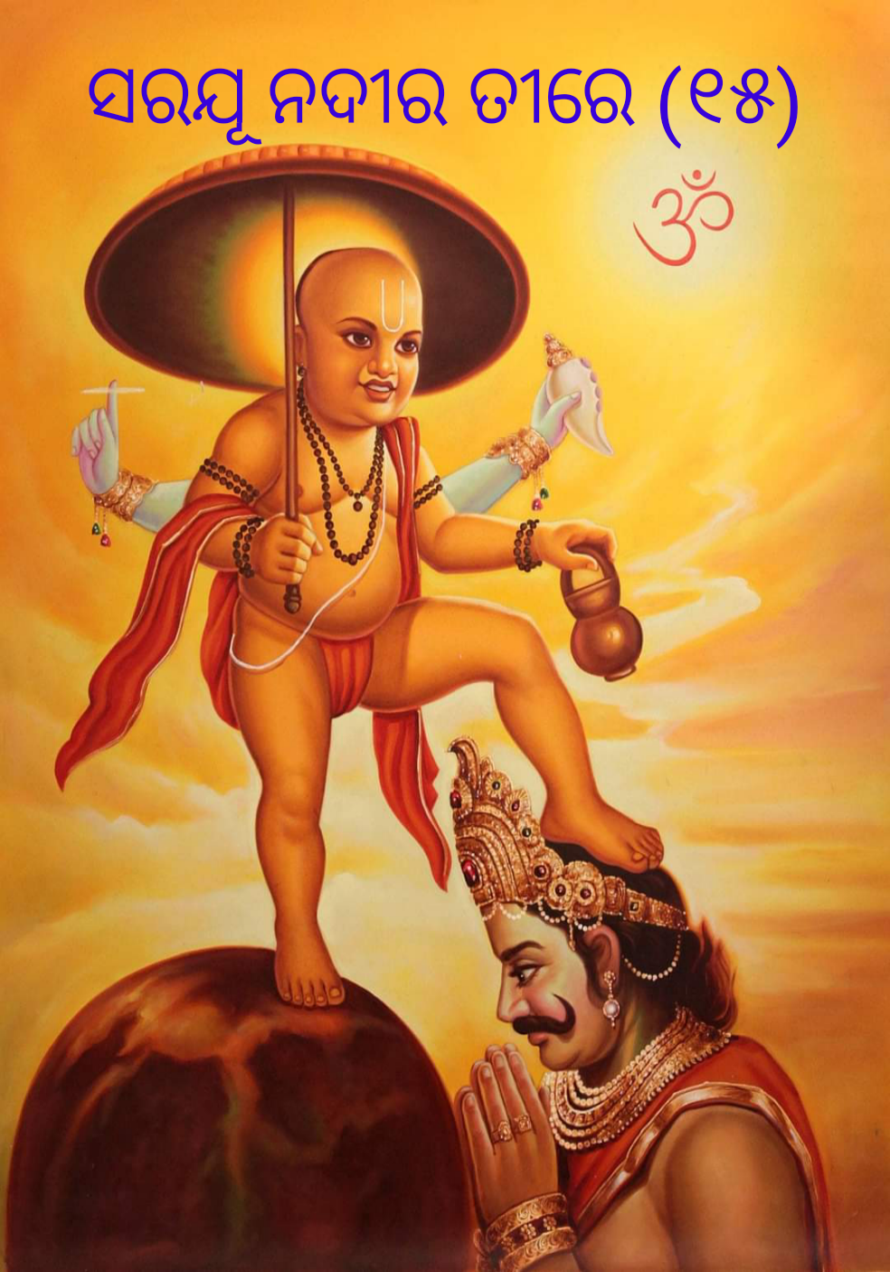 ବଳି ରାଜାଙ୍କ ସିଂହ ଦ୍ବାରରେ ଉପସ୍ଥିତ ହୋଇ ସାମବେଦ ଆବୃତ୍ତି କଲେ ବାମନ। ସୁଲଳିତ ଗୁରୁଗମ୍ଭୀର କଣ୍ଠରେ ବାମନ ଯେତେବେଳେ ବେଦପାଠ କଲେ ସମଗ୍ର ବିଶ୍ବ ବିହ୍ଵଳିତ ହୋଇଗଲା।ଶୁଷ୍କ କାଠରେ ଜୀବନ ସଞ୍ଚାର ହେଲା,କାନନରେ ପଶୁପକ୍ଷୀ ସ୍ତବ୍ଧ ହୋଇ ରହିଗଲେ,ସାଗରରେ ଉଠିଲା ଉତ୍ତାଳ ତରଙ୍ଗ।ଭୋଜନରେ ବସିଥିବା ରାଜା ବଳିଙ୍କ ଶରୀର ରୋମାଞ୍ଚିତ ହୋଇଗଲା।ଭାବିଲେ ବଳି... ଆଃ, କେତେ ବିପ୍ରଙ୍କୁ ଦାନ ଦେଇଛି, ଏଭଳି ସୁଲଳିତ କଣ୍ଠରେ ବେଦପାଠ ମୁଁ ଏପର୍ଯ୍ୟନ୍ତ କାହାଠାରୁ ଶୁଣି ନାହିଁ !