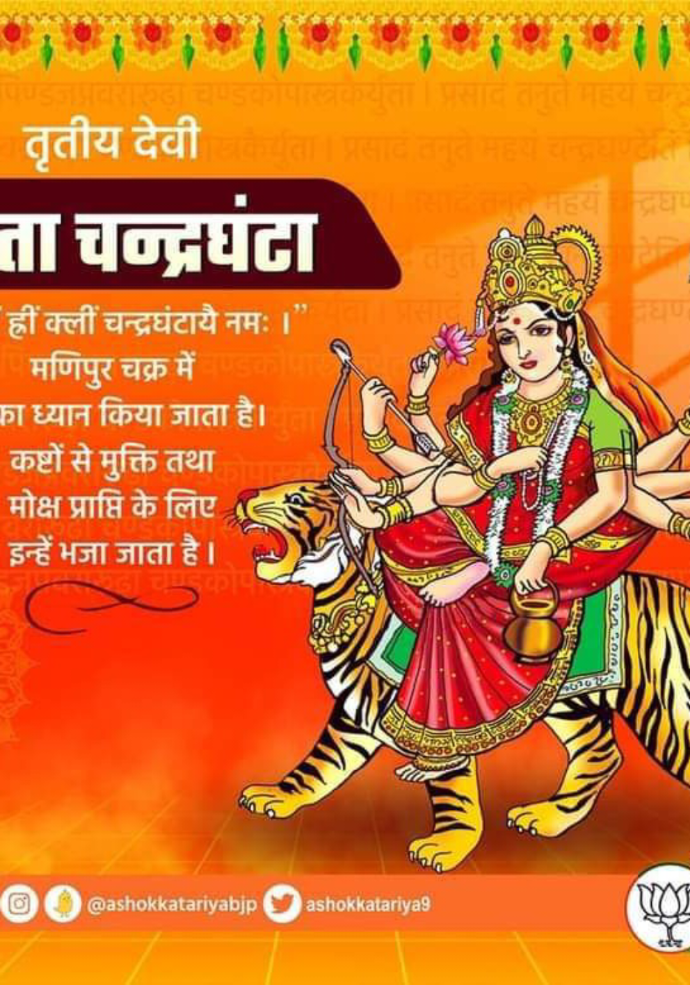 મા ચંદ્રઘંટાને ત્રીજા નોરતે વધામણા રે,