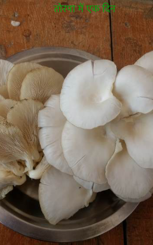 सिस्टर के साथ हमने मशरूम फार्म घूमकर देखा। एक बड़ा सा कमरा बनाया गया था, जिसमें मशरूम उगाये गये थे। कमरे में सूखे पेड़ के तने खड़े थे, जिन पर बड़ा-बड़ा सफ़ेद रंग का स्पंजी सा अर्ध गोलाकार क़रीब दस इंच तक का कुछ उगा हुआ था, सिस्टर ने बताया कि यही मशरूम है। हमने ऐसे मशरूम पहिले कभी नहीं देखे थे। एक एक तने पर इस तरह के बहुत से मशरूम उगे हुए थे। सिस्टर ने उनका नाम ऑयस्टर मशरूम बताया। और कहा कि “काफ़ी कम खर्चे में इनकी खेती हो जाती है। ये बहुत जल्दी बढ़ते हैं। भोजन का अच्छा स्रोत हैं। “