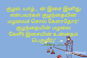 குழல், யாழ்_ ன் இசை இனிது என்பவர்கள் குழந்தையின் மழலைச் சொல் கேளாதோர்! குழந்தையின் மழலை கேளீர்;இசையின் உன்னதம் பெருவீர்!!